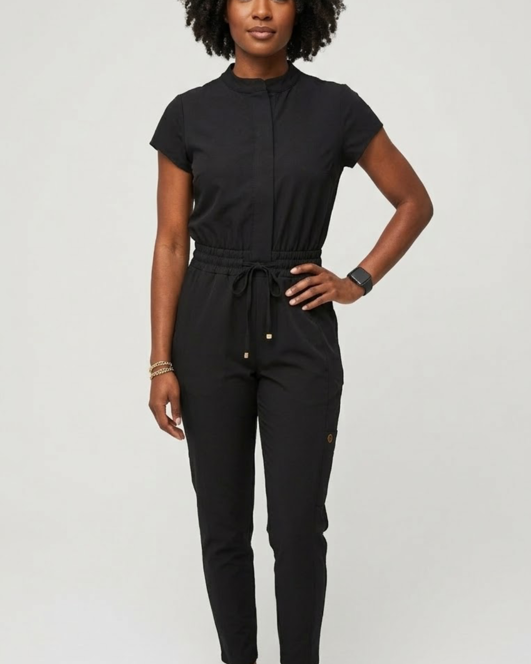 Women's High Waisted, Straight Leg Zip Scrub Pants - Black