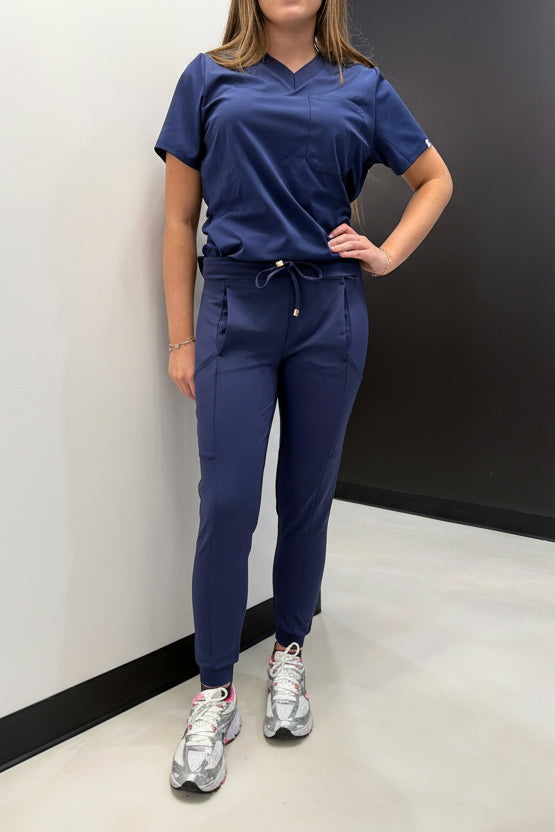 Reimagine your workday uniform with our Women’s Navy Low-Rise Scrub Joggers, designed for effortless movement and all-day wear. Featuring a modern jogger fit with a flattering low-waist design, these scrubs deliver comfort without sacrificing a polished, professional look. Crafted for busy healthcare professionals, they offer flexibility, breathability, and a streamlined silhouette that moves with you through every shift. Sleek, versatile, and intentionally designed, these joggers bring a refined, contemporary feel to clinical wear—because comfort should never look basic.