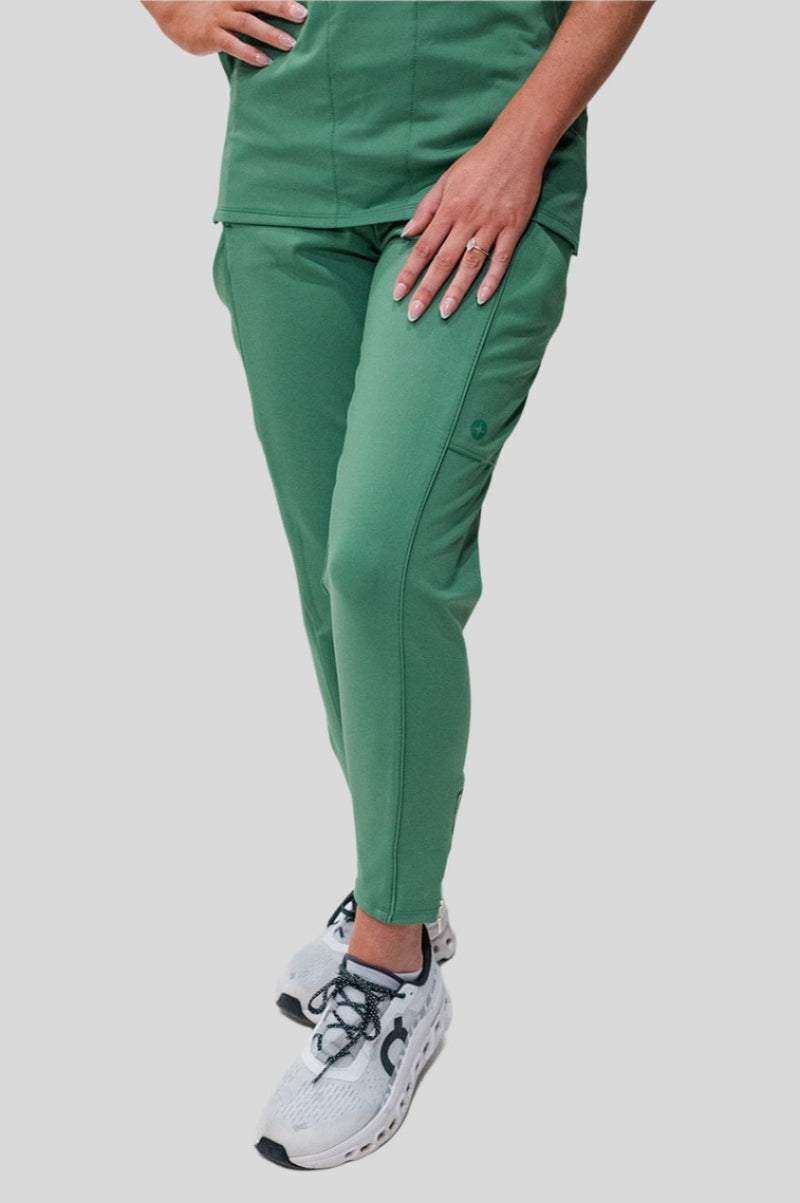 Women's High Waisted, Straight Leg Zip Scrub Pants - Green
