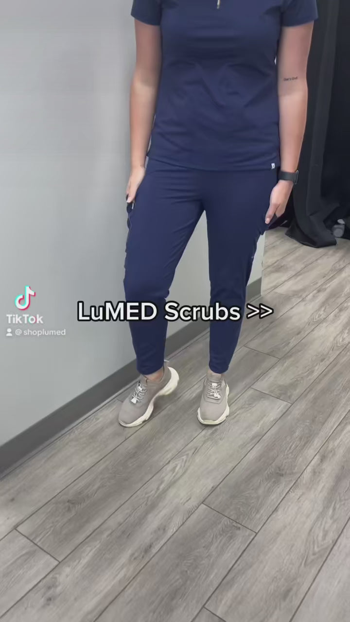 Women's High Waisted, Straight Leg Zip Scrub Pants - Navy Blue